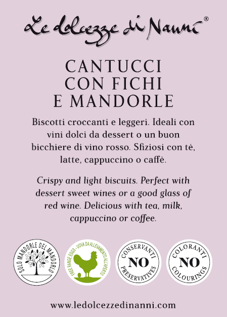Erlebe den authentischen Geschmack der Toskana mit diesen handgemachten Cantucci – traditionell gebackene Mandelkekse, verfeinert mit süßen Feigen. Hergestellt in einer kleinen italienischen Manufaktur, entstehen diese Köstlichkeiten nach überlieferten Rezepten und in echter Handarbeit.