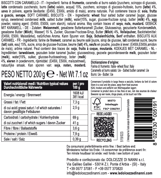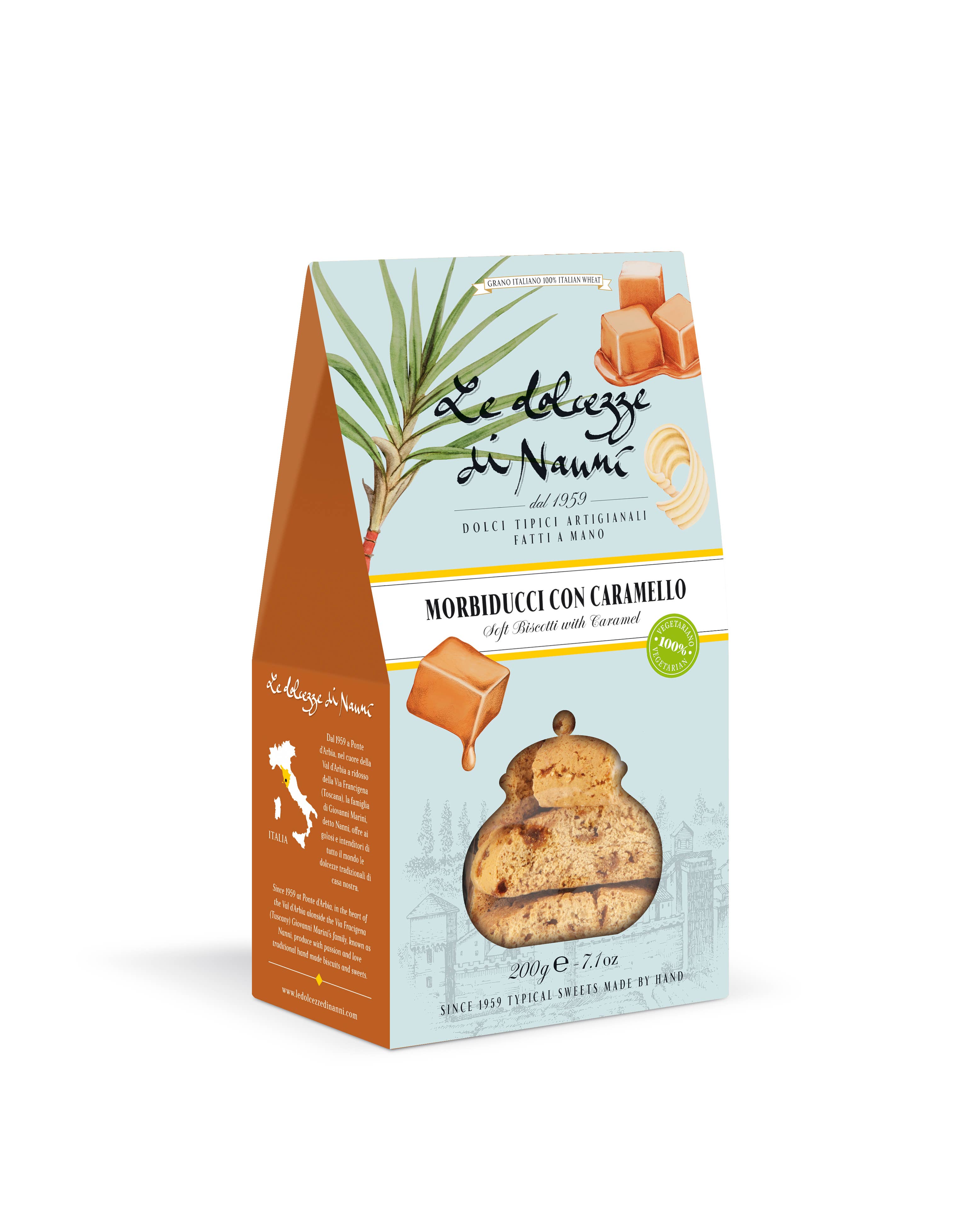 Zart, buttrig, karamellig: Die Morbiducci sind die weiche Interpretation toskanischer Kekse. Verfeinert mit cremigem Salzkaramell, handwerklich nach Familienrezept gebacken – für eine saftige Textur, dezente Salznote und ausgewogene Süße. Ideal zum Tee, Cappuccino oder als kleines Dessertgebäck.