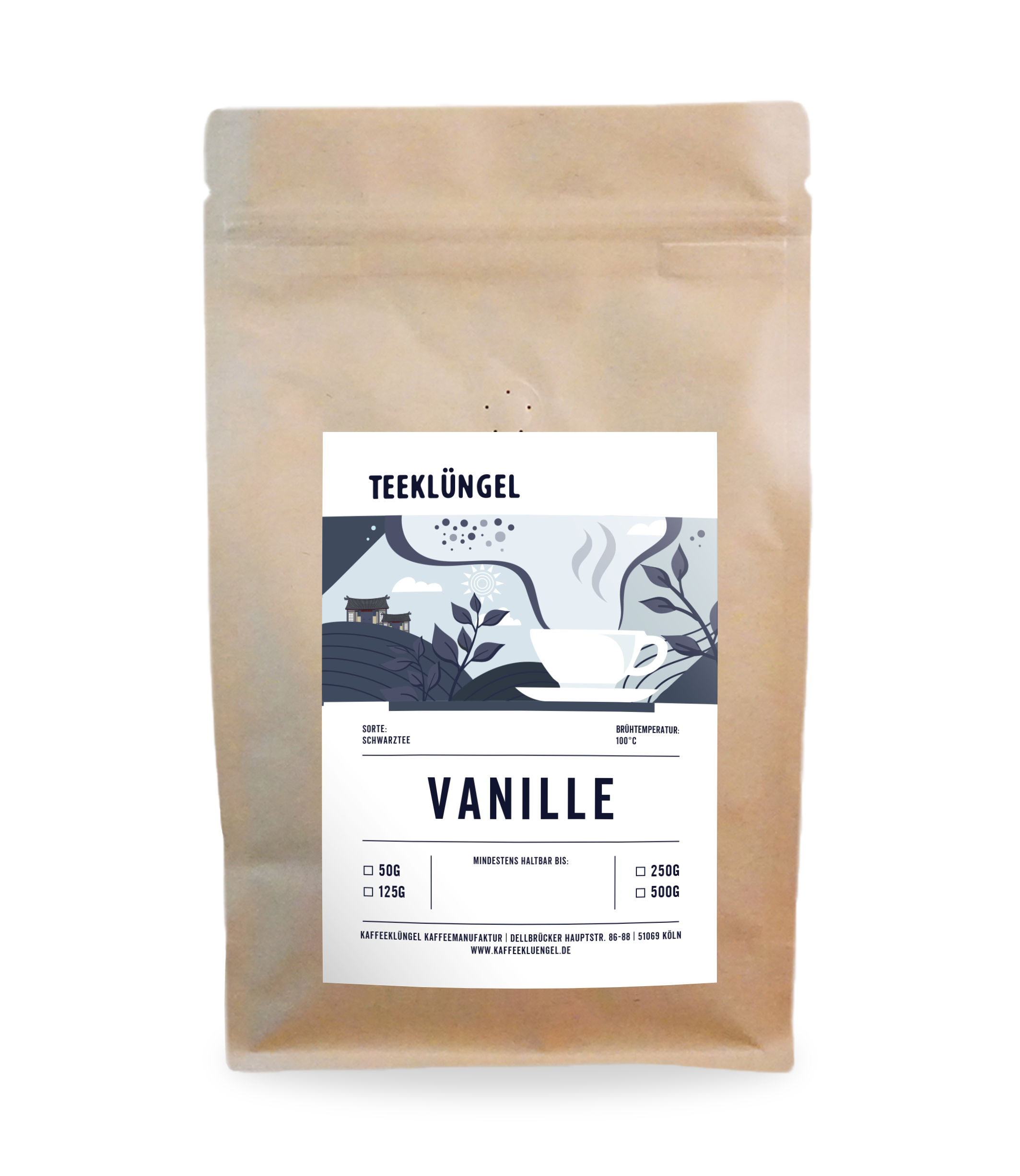 Der klassische Schwarztee-Blend wird in dieser Mischung mit intensivem Vanillegeschmack dank edlem Bourbon Vanille-Extrakt, aromatisch verfeinert.