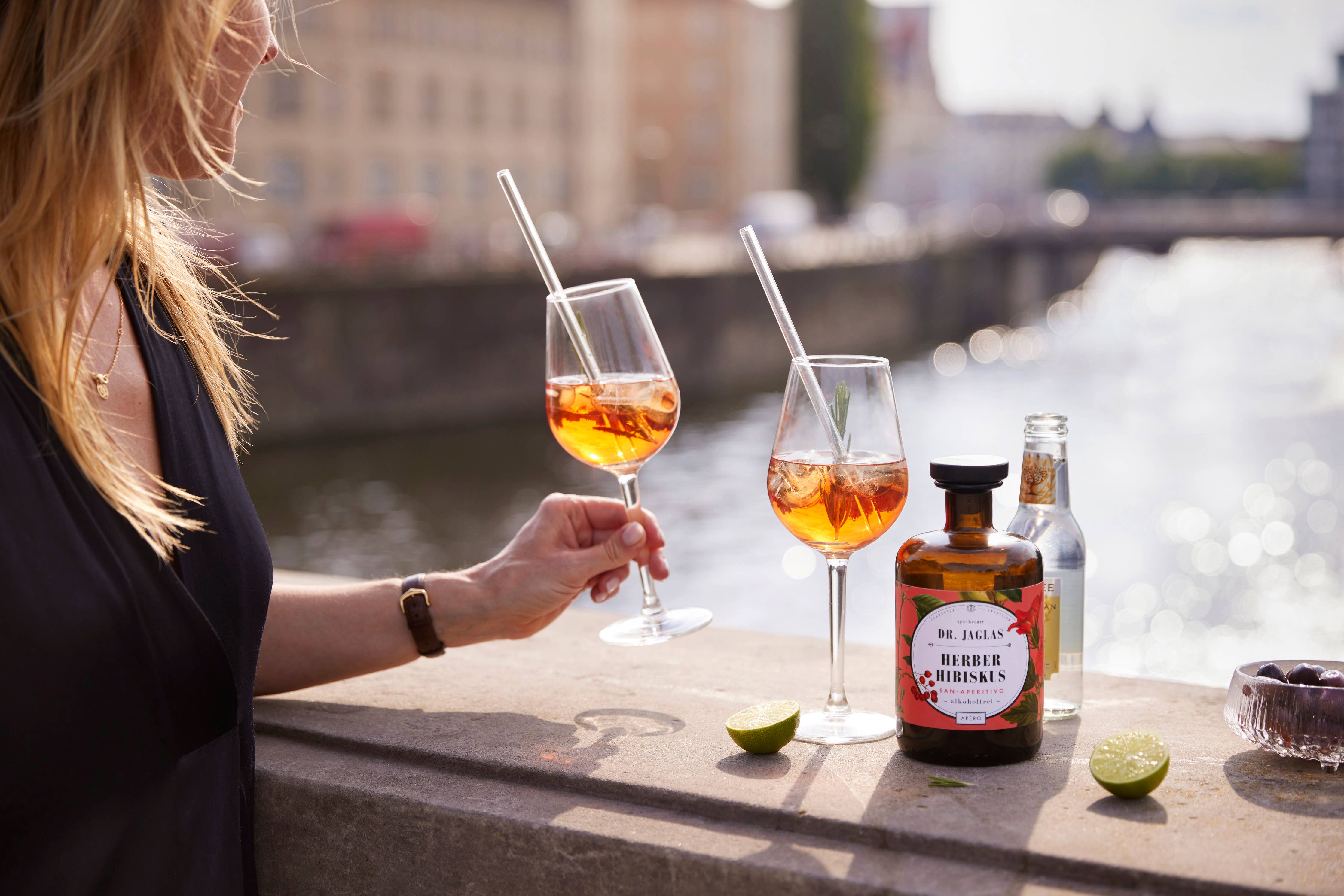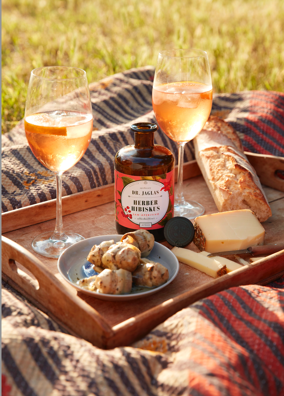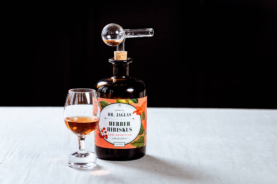 Dieser alkoholfreie Hibiskus Aperitif erinnert an eine alkoholfreie Version von Aperol Spritz und wurde von der Berliner Apothekenmarke „Dr. Jaglas“ entwickelt. Herber Hibiskus unterstreicht den Spirit einer neuen Aperitif-Kultur. Die herbe Süße der Hibiskusblüten wird durch Chirettakraut, Bitterorange und Rosmarin abgepuffert . Besonders ist die feine, dezente Whiskynote im Abgang. Die Apotheker empfehlen den Aperitif mit Tonic Water oder alkoholfreiem Sekt als Hibiskus Spritz. Im Weinglas oder Tumbler eignen sich Rosmarin oder Beeren. Passt zu Schokolade. Vor dem Wein. Perfektes Geschenk für Ostern und Weihnachten, für Schwangere, Stillende und Babyshower.